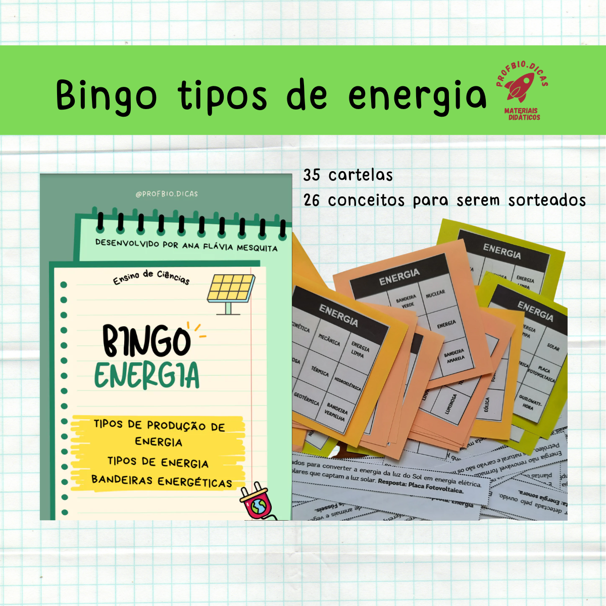 35 cartelas de conceitos sobre energia a serem distribuídas para os alunos. 26 conceitos para serem sorteados Inclui instruções para o prof.(a) Data de lançamento: 01/06/2022 Sugestão de uso: 8º do Ensino Fundamental Habilidades: EF08CI01, EF08CI03, EF08CI06